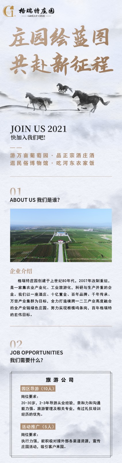 山西格瑞特酒莊有限公司成立于上世紀80年代,是一家集釀酒葡萄種植,釀酒生產(chǎn),農(nóng)業(yè)產(chǎn)業(yè)化,工業(yè)旅游化為一體