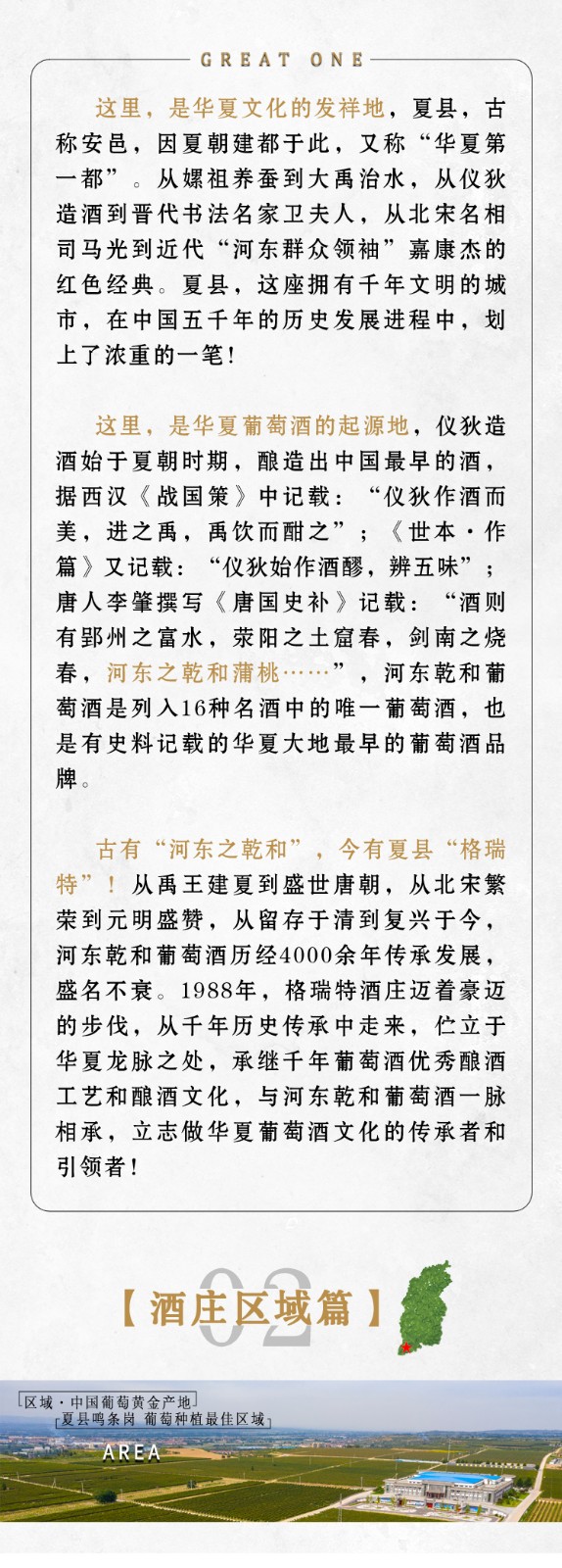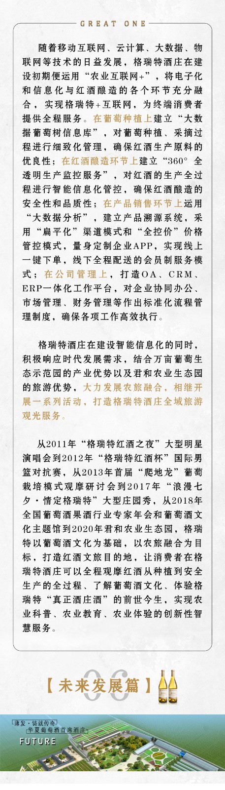 山西格瑞特酒莊有限公司成立于上世紀80年代,是一家集釀酒葡萄種植,釀酒生產(chǎn),農(nóng)業(yè)產(chǎn)業(yè)化,工業(yè)旅游化為一體
